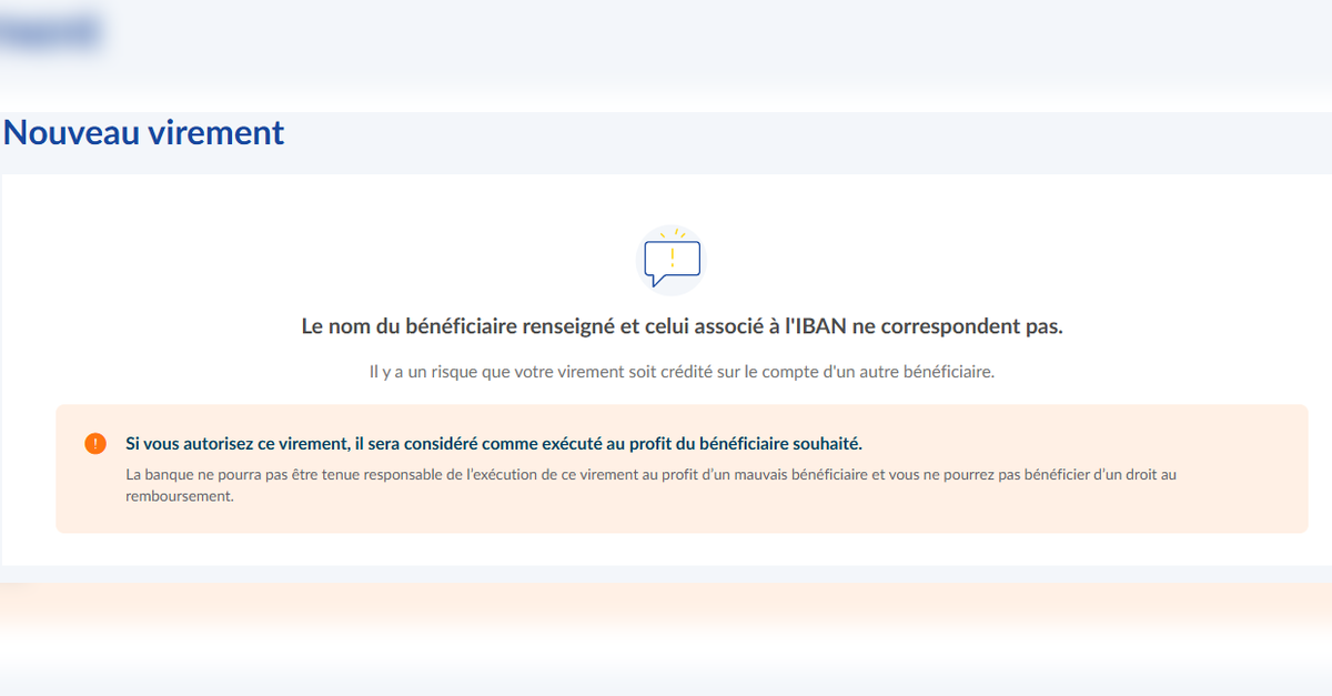 Les banques ont mis en place depuis début octobre 2025 une procédure de vérification de la concordance entre le nom d'un destinataire de virement et celui qui figure sur le compte bancaire, afin de limiter les fraudes